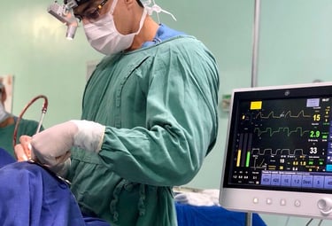 Procedimentos cirúrgicos especializados, incluindo técnicas modernas de adeoamigdalectomia, cirurgias nasais, implante coclear e próteses auditivas implantáveis